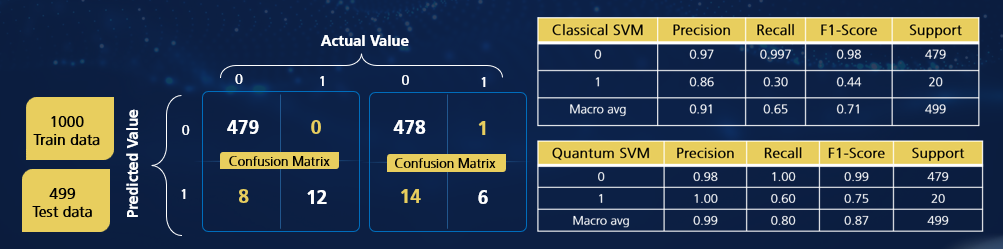 Our solution demonstrated higher prediction accuracy on the IBM Quantum System for transaction fraud detection when benchmarked against a classical support vector machine (SVM).