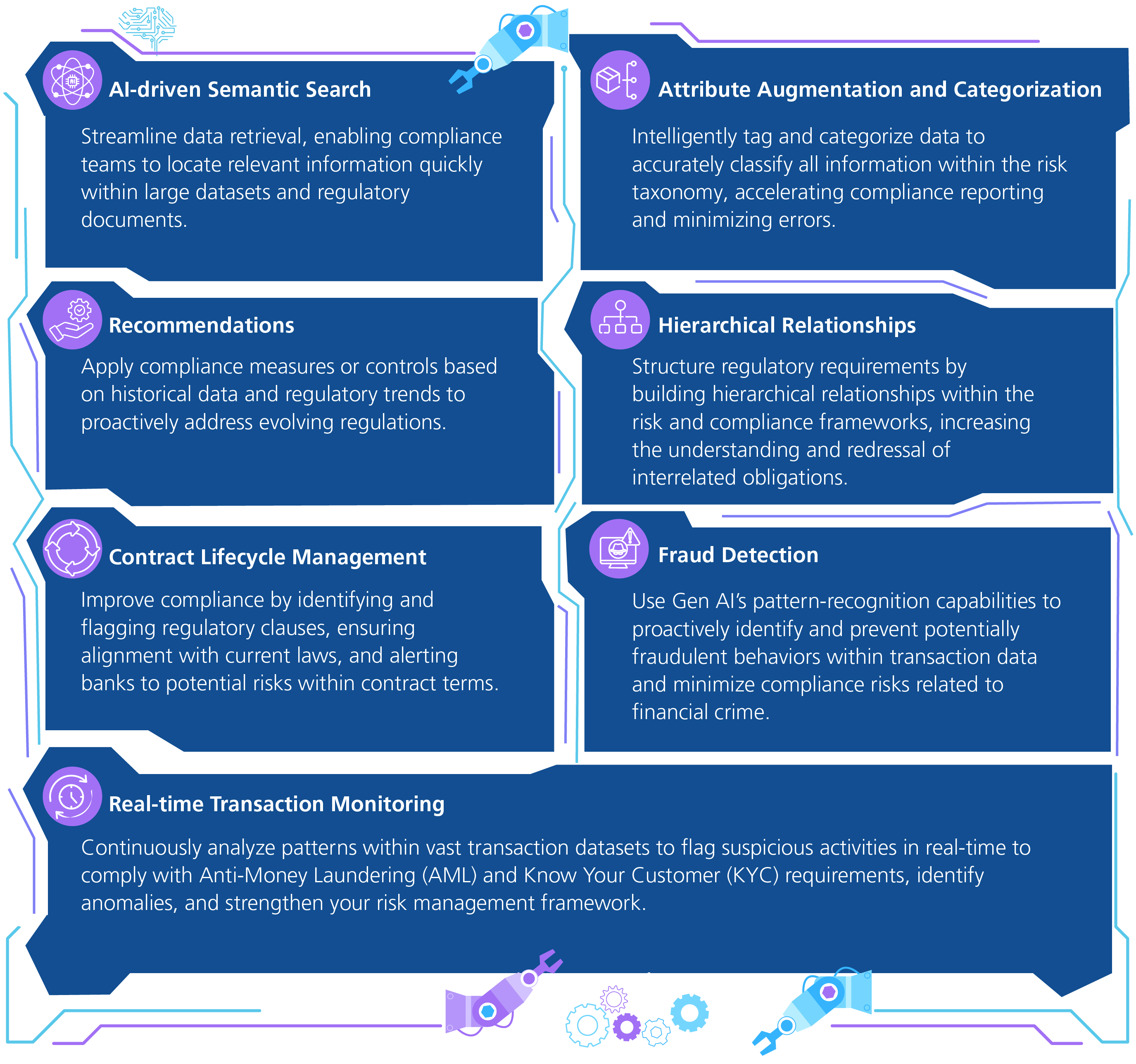 Global financial institutions face many challenges in managing risk and staying compliant with ever-changing regulations. Many banks still use old-fashioned, manual processes to check transactions, monitor compliance, and spot risks. This reliance on manual work causes inefficiencies and delays in decision-making and often leads to mistakes like false positives. These issues not only drive up costs but also slow down how quickly banks can react to potential risks.