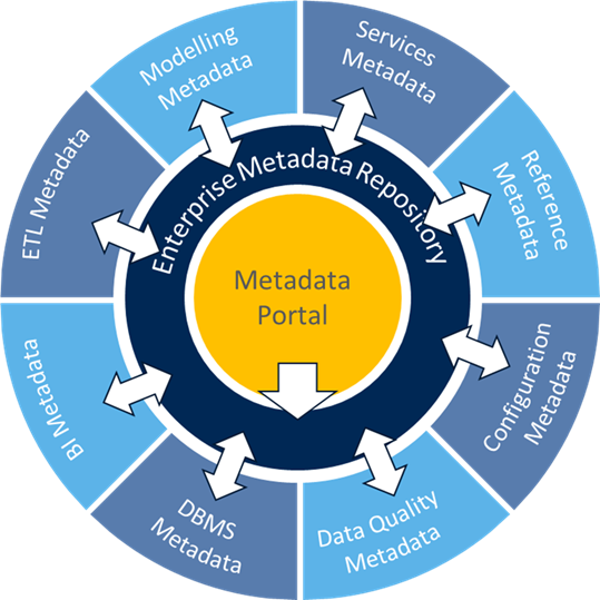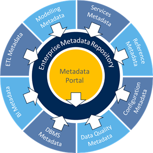 A single metadata repository that contains copies of metadata from various sources. Organizations seeking a high degree of consistency within the common metadata repository can benefit from this architecture.There is no persistent repository. The metadata management environment maintains the necessary source system catalogues and lookup information needed to process user queries and searches effectively.