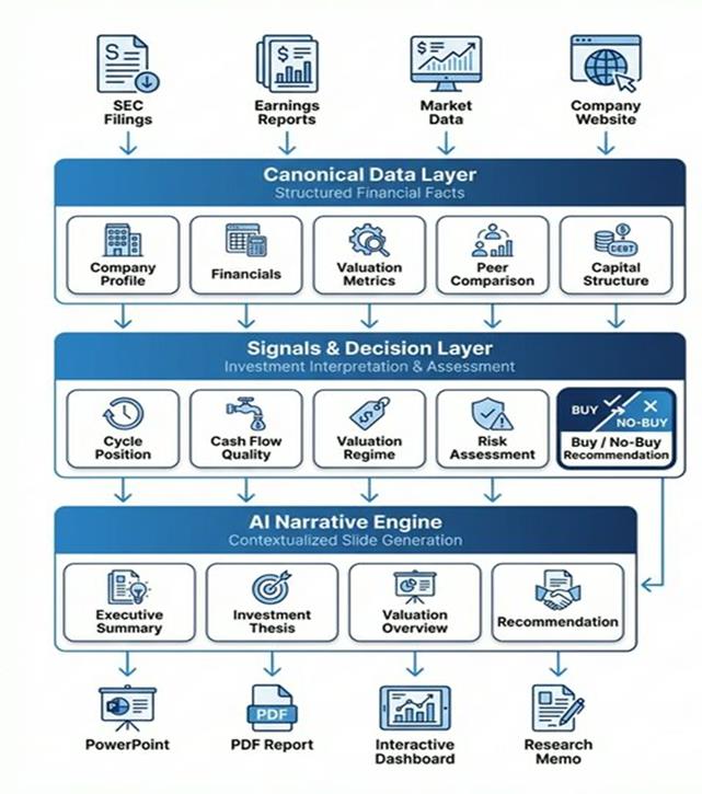 Customers commonly cite 40-60 analyst hours per pitchbook, with much of that effort going to non-analytical work: data extraction, formatting, chart production, and brand alignment. Although many banks have invested in AI, customers tell us these implementations often prioritize surface-level efficiency, refreshing data, applying templates, and populating standardized slides, while the most valuable components (deal thesis, positioning narrative, and client-specific framing) remain dependent on human judgment.