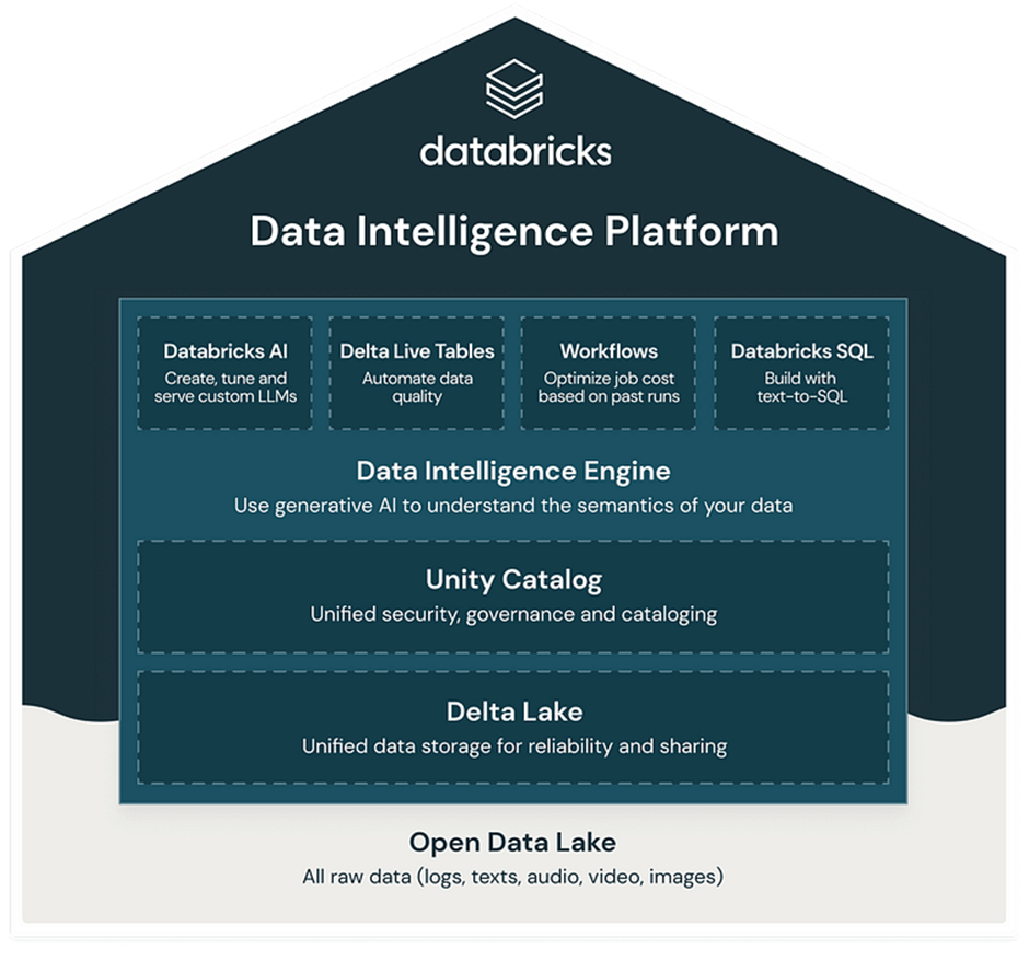 Figure 2: Data Intelligence Platform Architecture, Image source: Databricks (https://cms.databricks.com/sites/default/files/inline-images/blog-marketecture-1.png)