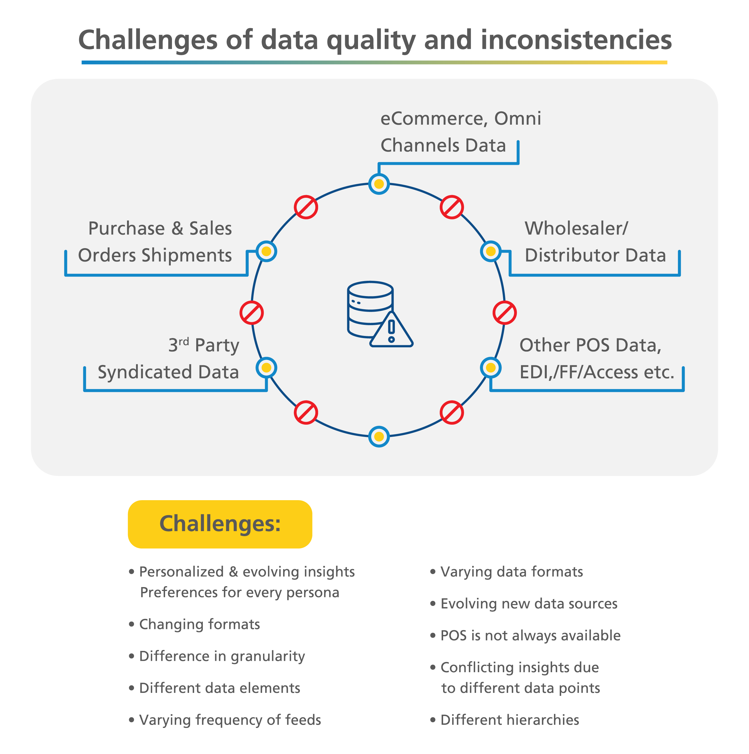 • Inconsistent insights: Data fragmentation leads to the unavailability of holistic views, causing analysis to miss out on broader context and potentially leading to incomplete, skewed, or conflicting insights. According to a 2024 McKinsey report, 85% of CPG companies still struggle with data fragmentation and inconsistencies, hindering their ability to fully leverage advanced analytics and AI.