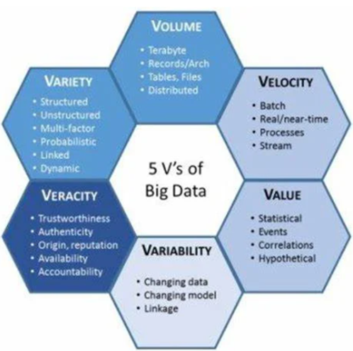Fig.1 The five V's of big data. Source - https://www.researchgate.net/figure/The-five-Vs-of-Big-Data-Adapted-from-IBM-big-data-platform-Bringing-big-data-to-the_fig1_281404634