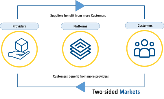So far, we have been able to tie the cloud with digital and digital with data, only to realize it is a connected cloud-digital-data world. Big data Data is the lever in the cloud transformation journey as it is on data that digital platforms operate. Many companies now use data to enhance online offerings. Enormous amounts of data are necessary for AI and ML systems to improve performances and customize solutions. Big data comes into the picture to deal with such petabytes and zettabytes of data. Early-bird businesses that identify this trend early on and invest in data management benefit from the improvements. Leveraging data Industries and businesses leveraging digital platforms as a primary public cloud transformation strategy have a significant advantage over their competitors. Customer data insights and usage patterns drive service quality and business model improvements. For instance, e-commerce platform giant Amazon, backed by AWS, offers suggestive buying recommendations based on historical purchasing patterns. With the data, Amazon can forecast spending analysis. Pre-emptive shipping coupled with ML techniques anticipates the likelihood of a purchase from the customer's shopping cart. Market study One of the biggest ambitions for digital platforms in the cloud is to achieve economies of scale. The growth and popularity of a digital platform are attributed to its attractiveness, which in turn attracts more customers as a ripple effect. The more suppliers a platform has, the more demand it draws, making it appealing to providers. The term "two-sided market" refers to this type of dualism, where a supplier demand equilibrium is found in digital platforms. This is based on the premise that the platform will only appeal to new prospective customers if a critical mass has previously been reached (as depicted by the figure below).