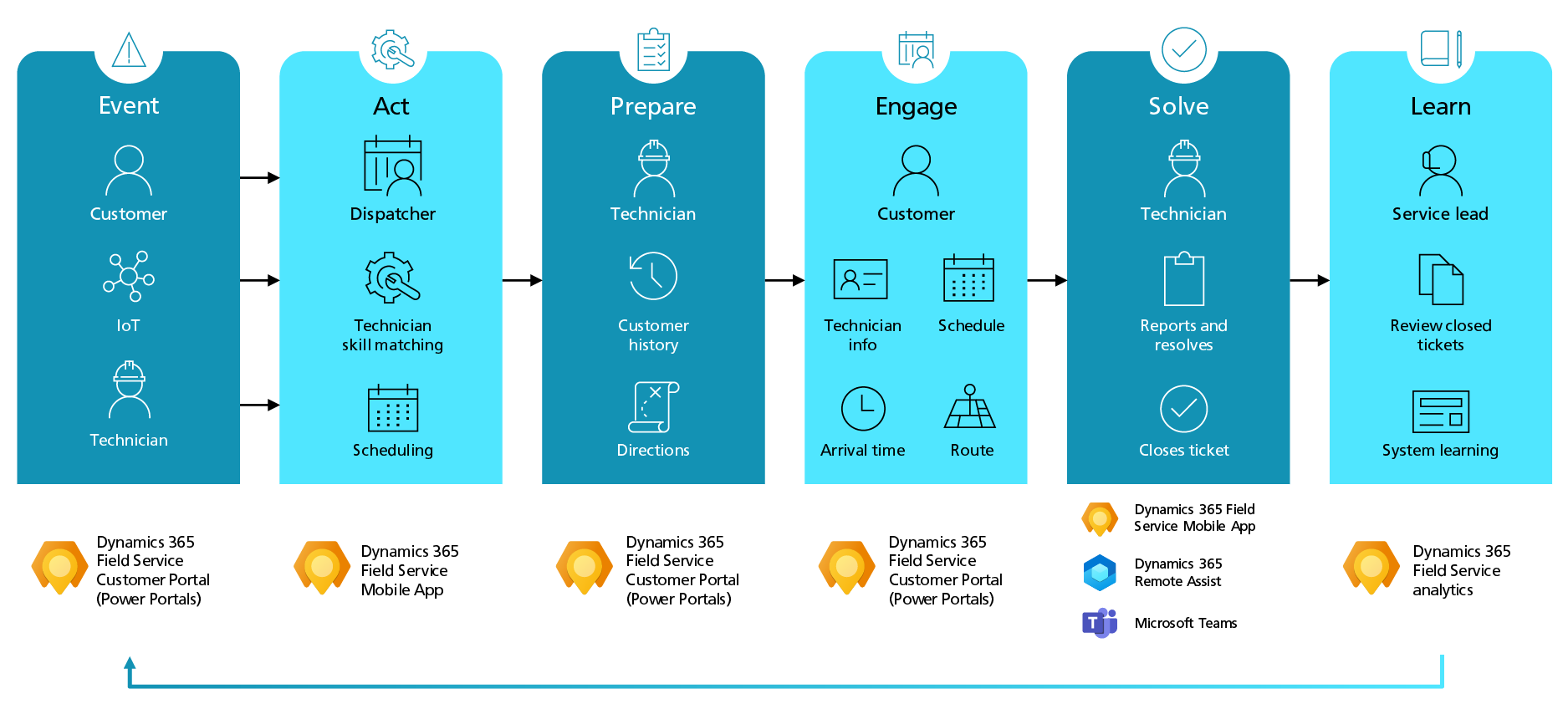 • Solution - Dynamics 365 Field Service integrates customer portals, real-time chatbots, and feedback mechanisms. This engages customers throughout the service process, and their feedback is captured for continuous improvement.