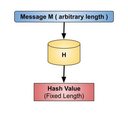 Figure 1: Hash Function, Tutorialspoint: https://www.tutorialspoint.com/cryptography/cryptography_hash_functions.htm