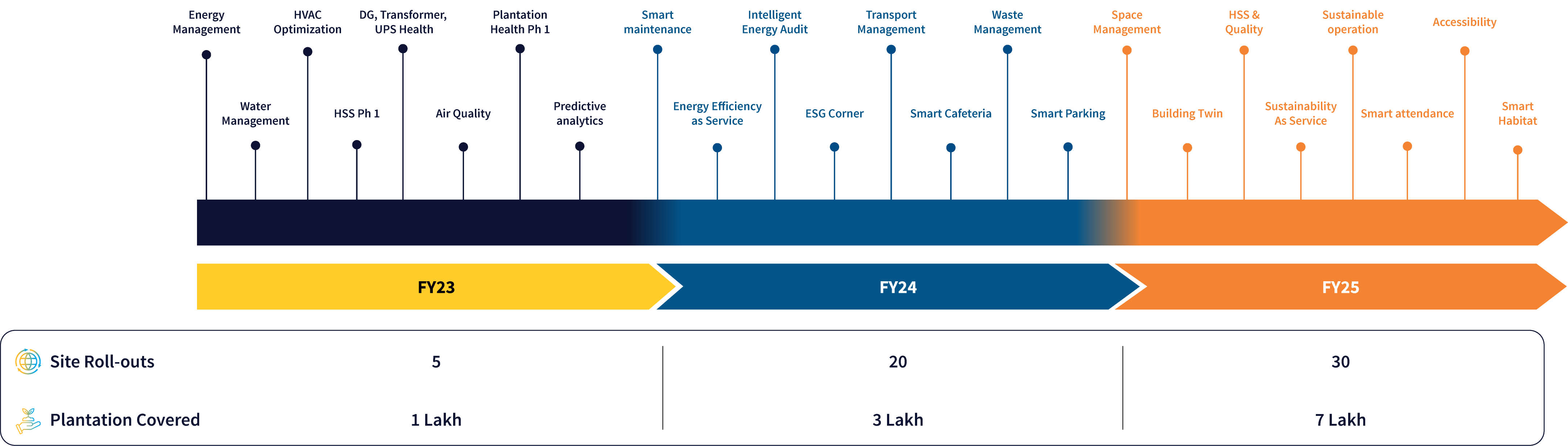 Using smart building technology, we improved monitoring, automation, and performance, ensuring smooth and sustainable campus infrastructure operations. Building on this success, similar transformations are now planned for other key campuses across India, including the S2 Hebbal campus in Bangalore, T1-T2 Innovation campus in Chennai, and Mensa campus in Mumbai. Additionally, 23 other facilities have been manually integrated with the Smart Spaces platform over the past year, with plans for eventual digital integration.
