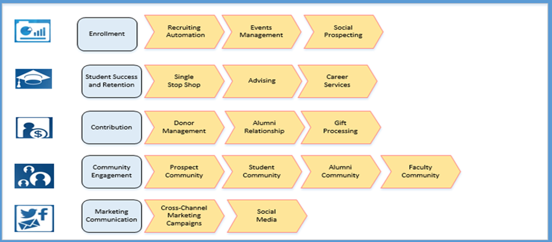 Student’s journey in higher education is not a single milestone but a continuous path that extends from the first touchpoint to post-graduation success. At every stage, interactions generate valuable data that, when connected, provides a complete picture of the learner’s experience:- Pre-Enrollment: Exploring programs, completing applications, applying for financial aid or grants, or attending virtual information sessions.
