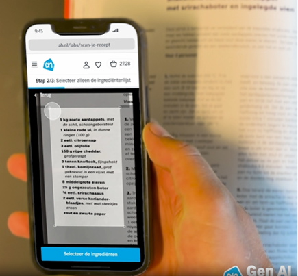 Enhancing customer experience with Gen AI-based recipe scanner, Albert Heijn, June 28, 2023: https://nieuws.ah.nl/albert-heijn-innoveert-met-generative-ai-voor-klanten-en-medewerkers/