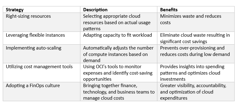 Implementing effective cost management strategies is crucial for optimizing cloud expenditures. Here are some best practices for controlling cloud costs with Oracle OCI: