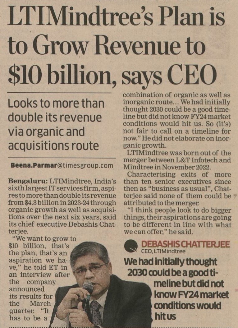 LTIMindtree's Plan is to Grow Revenue to $10 billion, says CEO