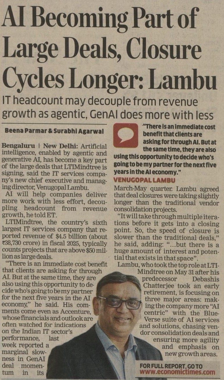 AI becoming part of large deals, closure cycles longer: LTM CEO