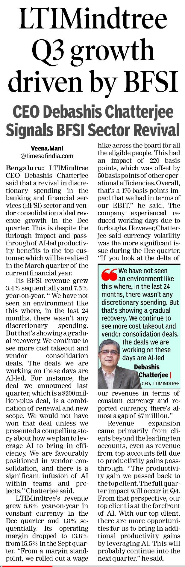 LTM Q3 growth driven by BFSI