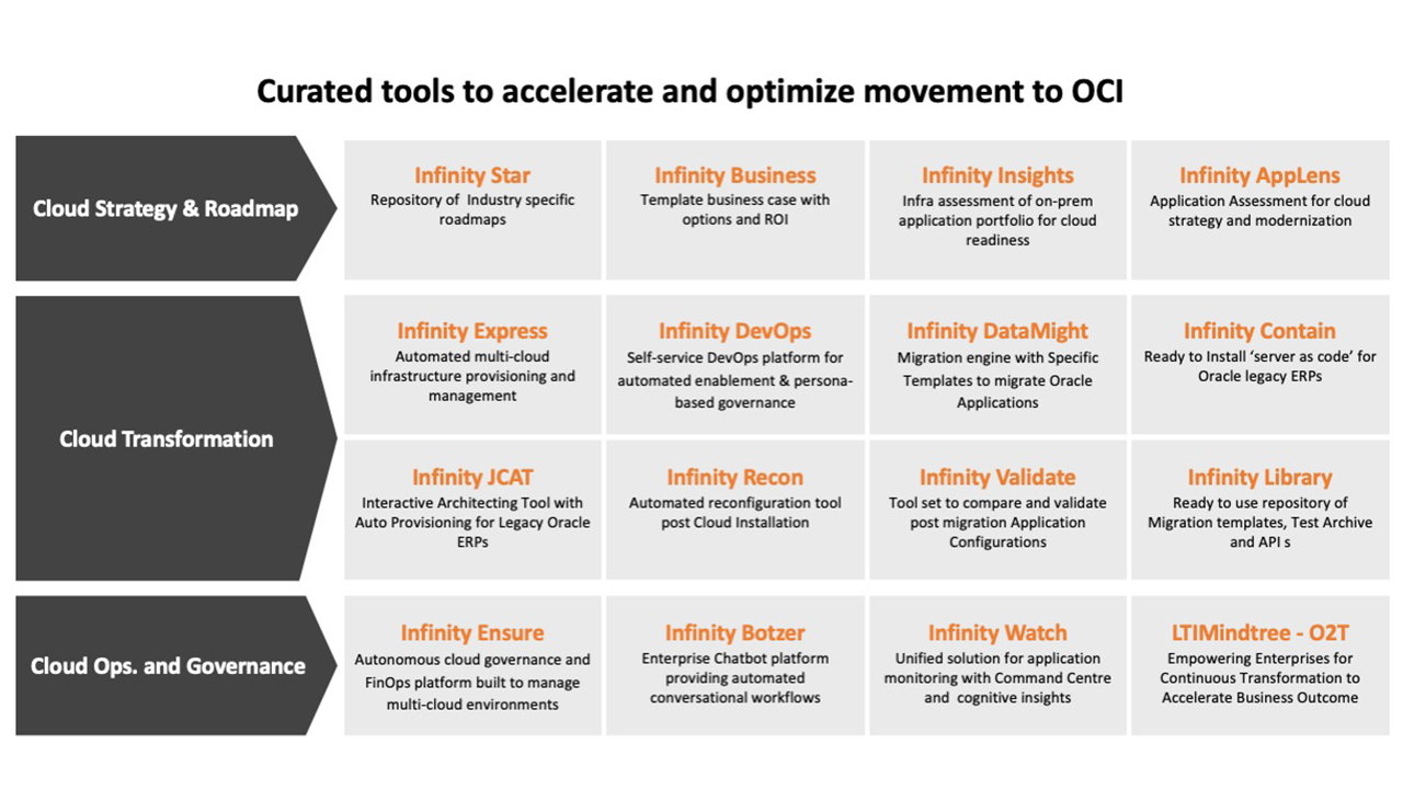LTM brings its proprietary multi-cloud platform INFINITY as an innovative offering to support, accelerate, and optimize the use of Oracle Cloud Infrastructure (OCI). The offering aims at:
