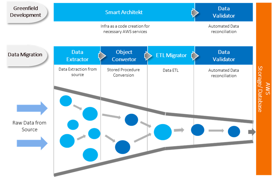 Scarlet leverages AWS services on demand for cost-optimized and efficient usage and scalable computing and storage. It is designed to accelerate the AWS cloud journey from on-premises to the cloud as well as greenfield projects. The set of accelerators utilized by Scarlet automates processes, reduces manual intervention, and optimizes cost. It can migrate data and underlying scripts to create a combination of data warehouse and data mart, for consumption by appropriate downstream systems, including leading BI tools.