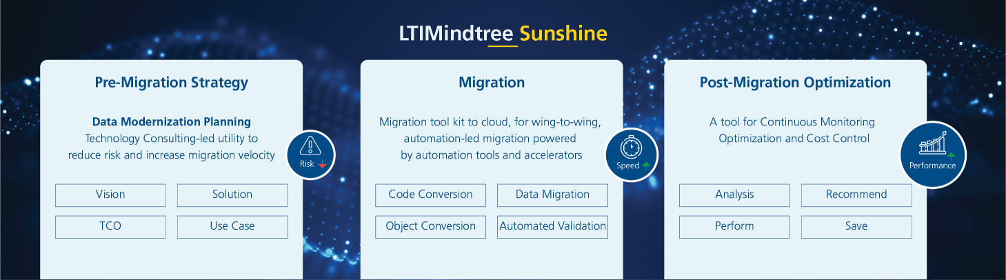 Sunshine reduces the manual effort required to move from on-premises to the cloud by making your data migration journey timely, predictable, and cost-effective.