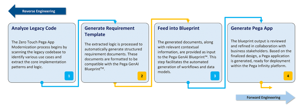 To help enterprises stay responsive and competitive, our solution—powered by Pega Infinity™—offers a structured, low-risk approach to modernization. It simplifies complex architecture, brings intelligence into core processes, and enables faster decision-making through automation. By staying attuned to market trends, our solution ensures smooth transition to agile, future-ready systems with minimal disruption.